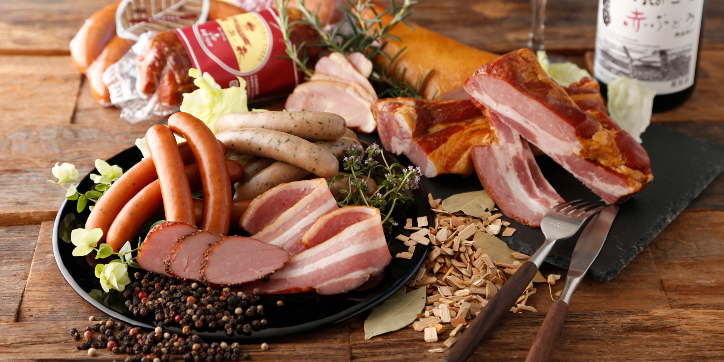 北海道で育った大地の恵みゆたかな豚肉を、手間ひまかけて人の手で仕上げています。数種類のスパイス、薫り高い桜チップでのスモーク、ジューシーな食感。こだわりのベーコンやハム、ウインナーやフランクフルトなど、多彩なラインナップをご用意しております。